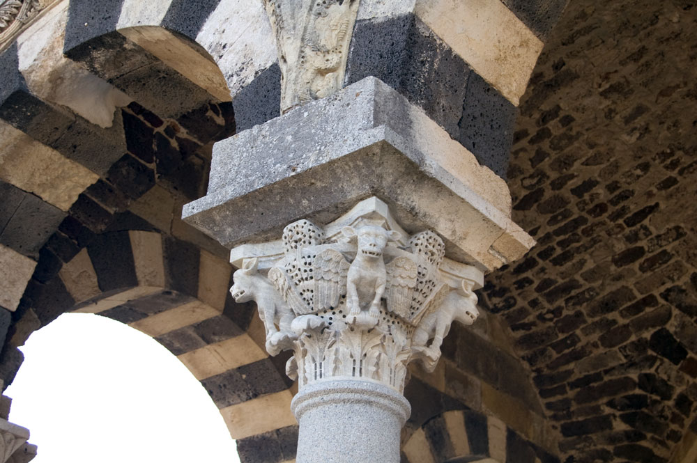 En el costado sur se conserva una portada monumental, compuesta por un arco apuntado decorado con tres roscas abocinadas de cavetos, que arrancan desde una imposta moldurada de nacela. Sobre este arco se disponen dos fajas horizontales con facetas, rematadas por una tercera moldura de nacela, todo enmarcado por pilastras de ladrillo que flanquean la estructura.